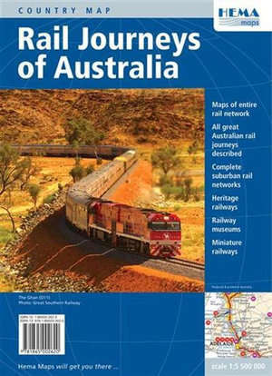 Hema Maps celebrated the opening of the Alice Springs to Darwin railway by publishing their wonderful 'Rail Journeys of Australia' fold-out map and they printed railmaps.com.au maps on the reverse. Rail Journeys of Australia was acclaimed around the world and was awarded the International Map Trade Association's 2004 prize for Best Map in the World. A second edition (ISBN 9781865002620) was published in 2007.